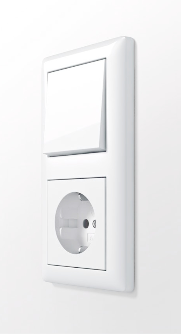 - A push-button on the wall. This looks like a normal rocker-switch you find in any home, but it bounces back into the up-position always, so it’s always in the same position. This has advantages of being intuitive to use by non-involved users, not mixing up up/down positions for on/off state of the light, and allows for more features to be implemented by long or double pressing the button.